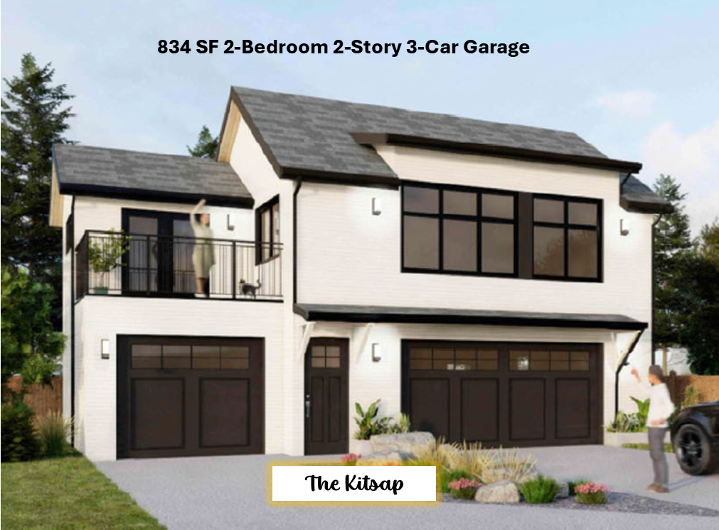- 672-834 Square Foot One-Bedroom Two-Story w/Two or Three-Car Garage/Floor Plan (The Kitsap)