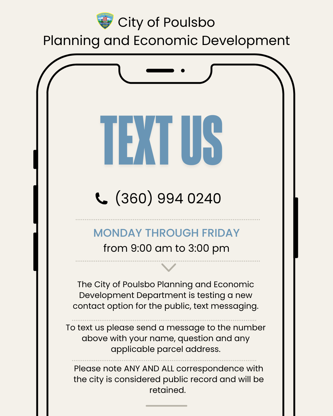 Poulsbo’s Planning and Economic Development Department staff are your resource for questions related to land use and economic development within the city.