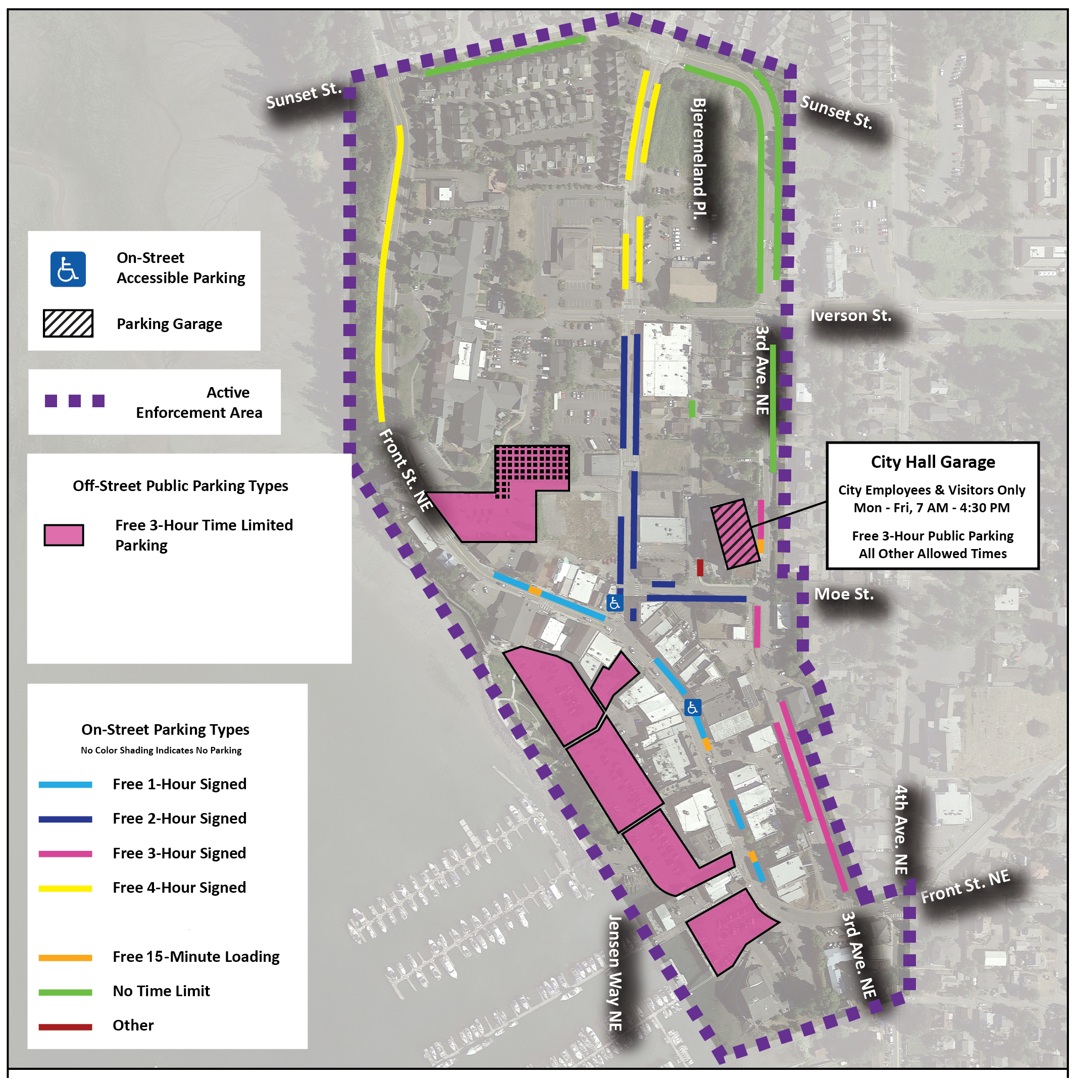 “By enforcing time limits and creating designated employee parking areas, we are ensuring that downtown visitors can more easily find parking and enjoy everything Poulsbo has to offer. For the first time in the city’s history, we are also providing dedicated and flexible parking options specifically for downtown employees—recognizing their vital role in supporting our businesses while keeping customer spaces available.” – Mayor Erickson